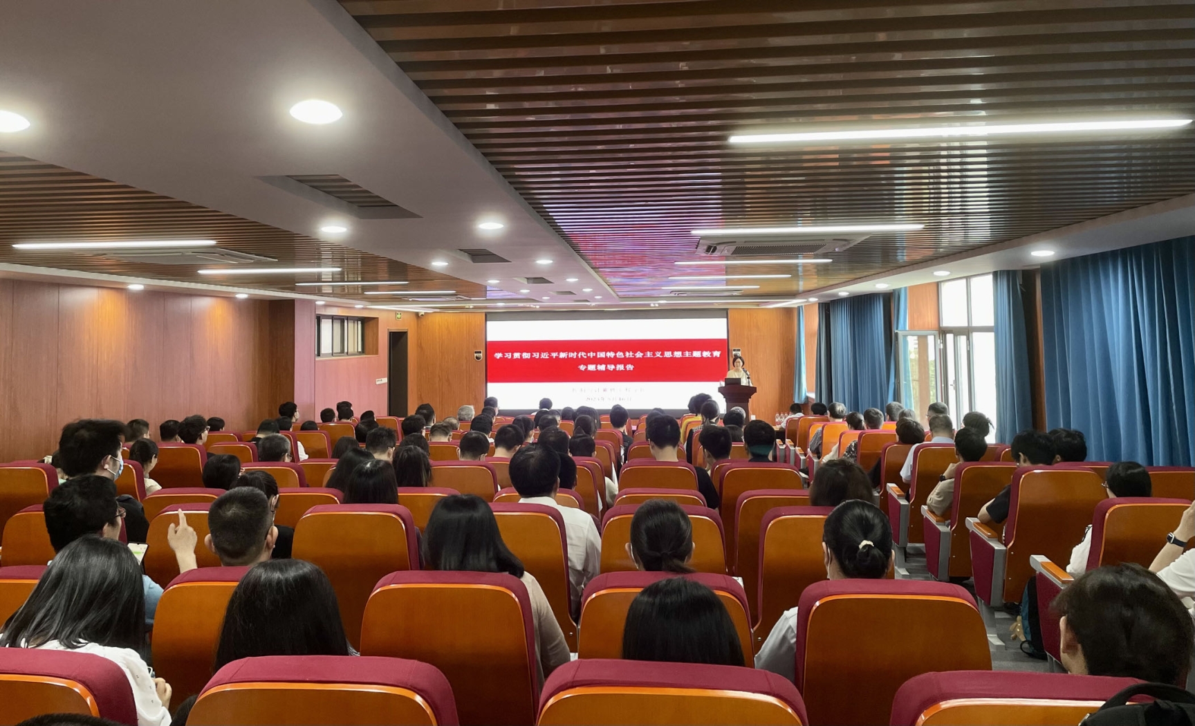 骆小平教授从“辉煌成绩为中国式现代化提供了物质基础”“‘三个务必’为中国式现代化巩固领导力量”“深刻理解和推进‘中国式现代化’”三个方面深入浅出地阐释了中国式现代化的理论价值和现实意义。骆小平教授讲到中国式现代化是在中国特色社会主义进入新时代的历史背景下,党领导人民成功走出的一条符合中国实际、体现中国特点、有着中国风格的现代化之路。我们要深入学习贯彻习近平新时代中国特色社会主义思想主题教育,增强推进中国式现代化的信心和力量,以更加自觉的行动、更加有力的举措、更加开放的胸怀,走属于我们的中国式现代化道路,不断夺取全面建设社会主义现代化国家新胜利,不断见证中国号巨轮奋楫扬帆、凯歌前行。