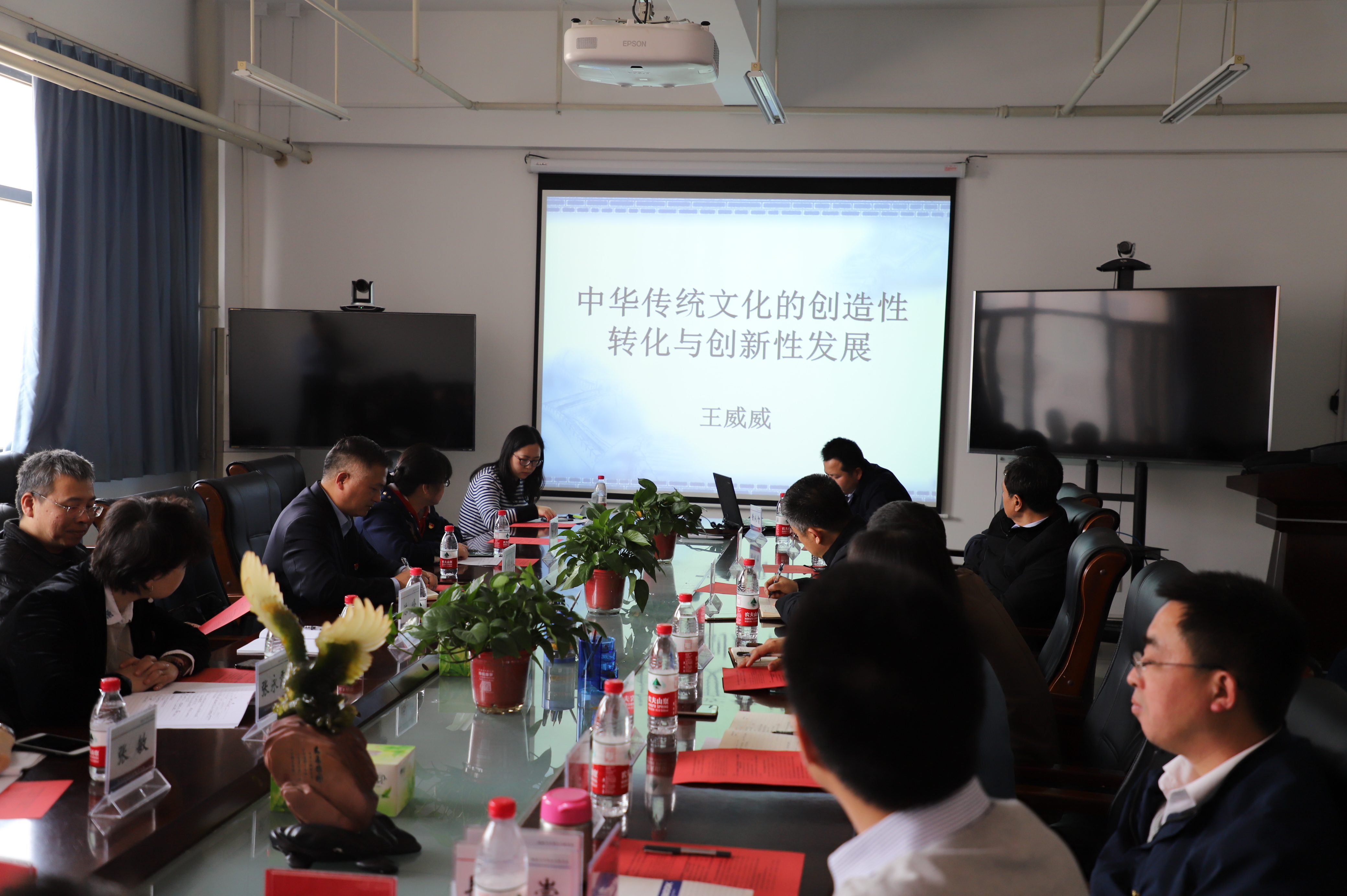 会议第一部分特别邀请了杰克论坛 国学研究中心主任、法家研究中心副会长王威威教授为校企双方作了《中华传统文化创造性转化和创新性发展》的讲座。王威威结合党的十九大报告生动诠释了文化自信是一个国家、一个民族发展中更基本、更深沉、更持久的力量,并从核心思想理念、中华传统美德、中华人文精神三个维度提出了新时代如何推动中华优秀传统文化创造性转化、创新性发展问题。与会双方代表深受启发。