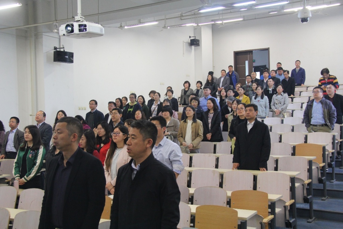 教职工大会在国歌声中拉开序幕。首先,林主席发表讲话,充分肯定了学院在过去一年取得的各项成绩,并对将来工会的工作提出了以下几点希望:第一,提高政治站位,增强工会工作的使命感。第二,务实创新,提高工会工作水平,以围绕中心服务大局的意识,开展双一流建设,务实主义,积极作为。第三,凝心聚力,加强工会自身建设,打造团结和谐,富有活力的干部。希望大家共同努力,主动寻求各级政府的支持,动员广大职工积极参与,形成党政所需,职工所盼的工会部门的良好局面。