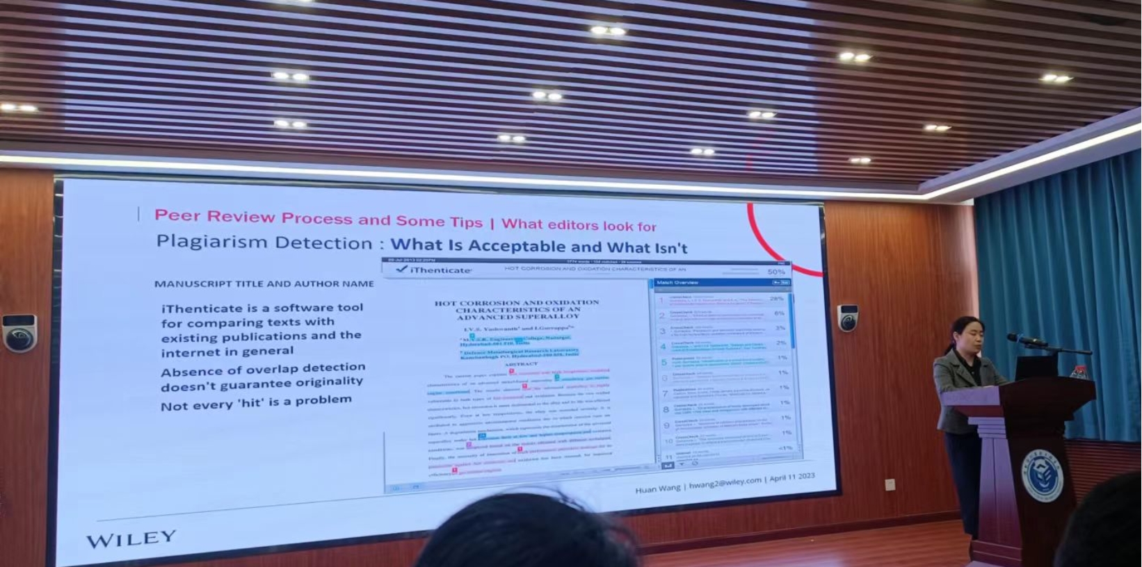 此外,报告还介绍了iThenticate查重软件的判断标准以及WILEY的相关期刊。