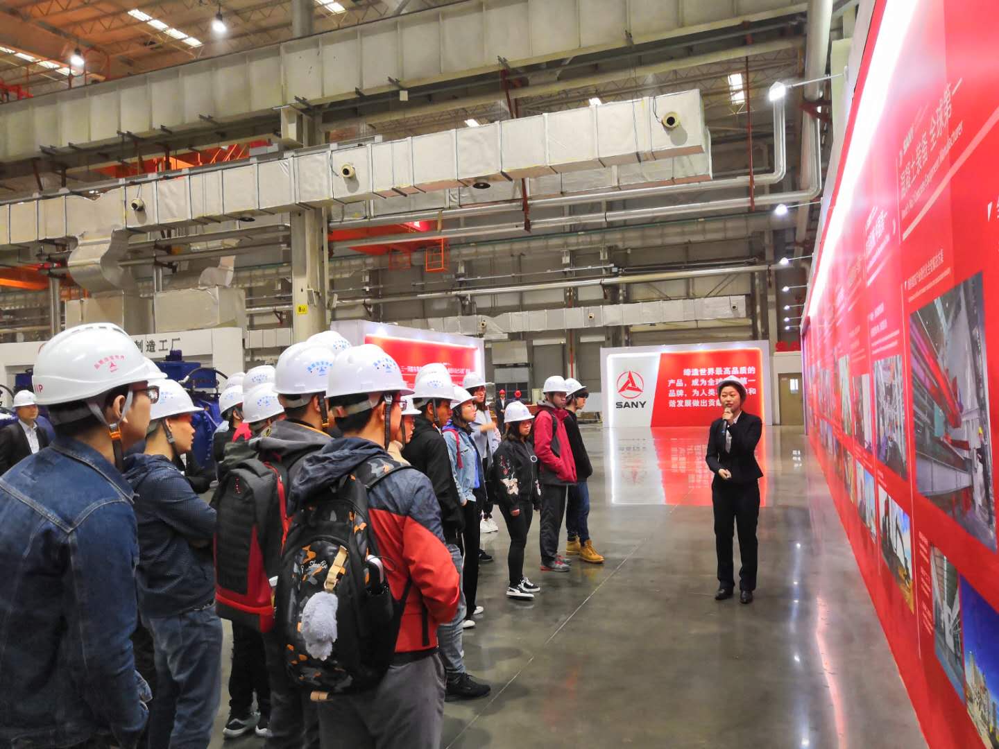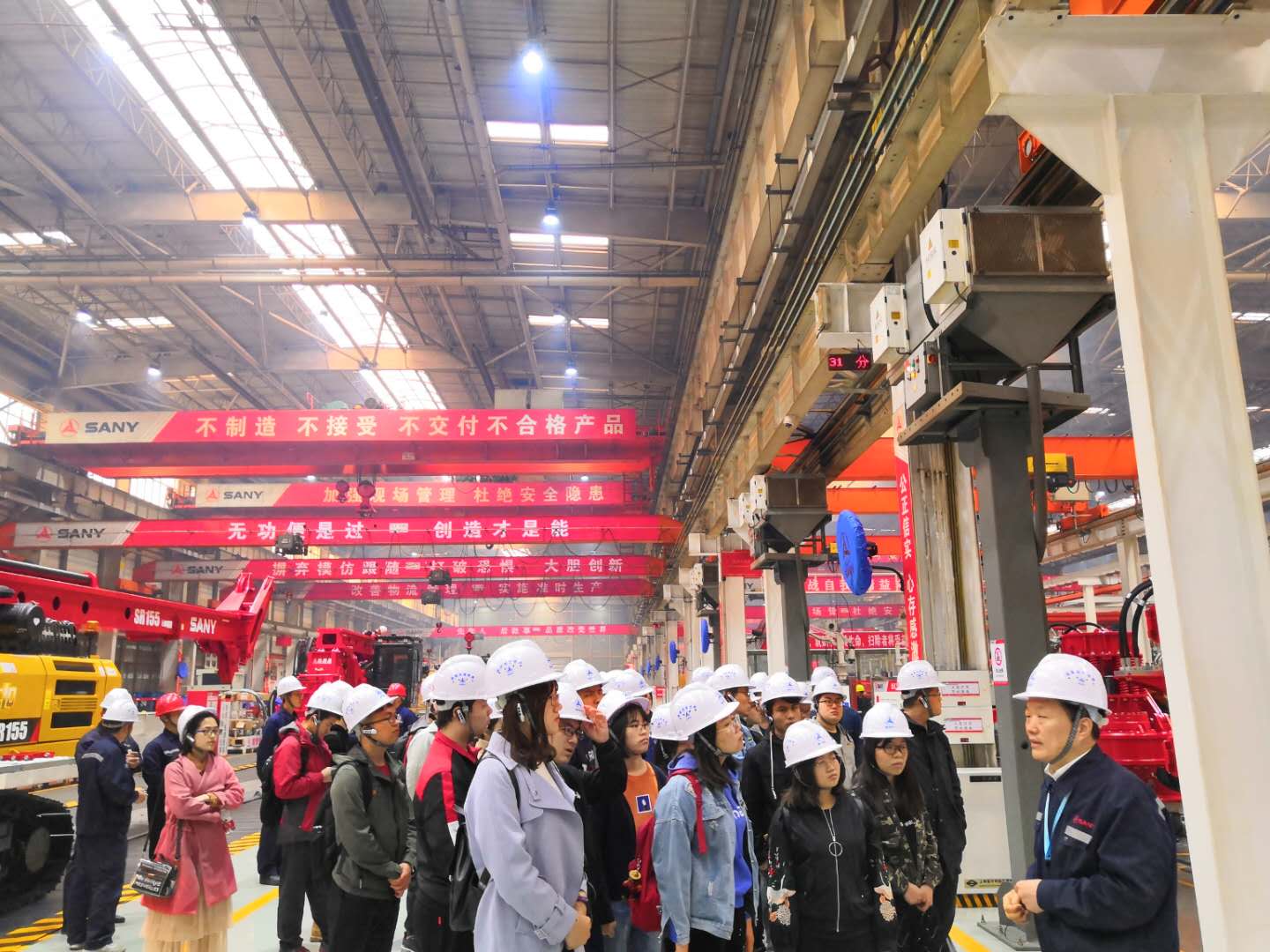 师生在学院党委副书记丁文俊的带领下,前往参观中国机械行业首家世界500强企业——三一重工。