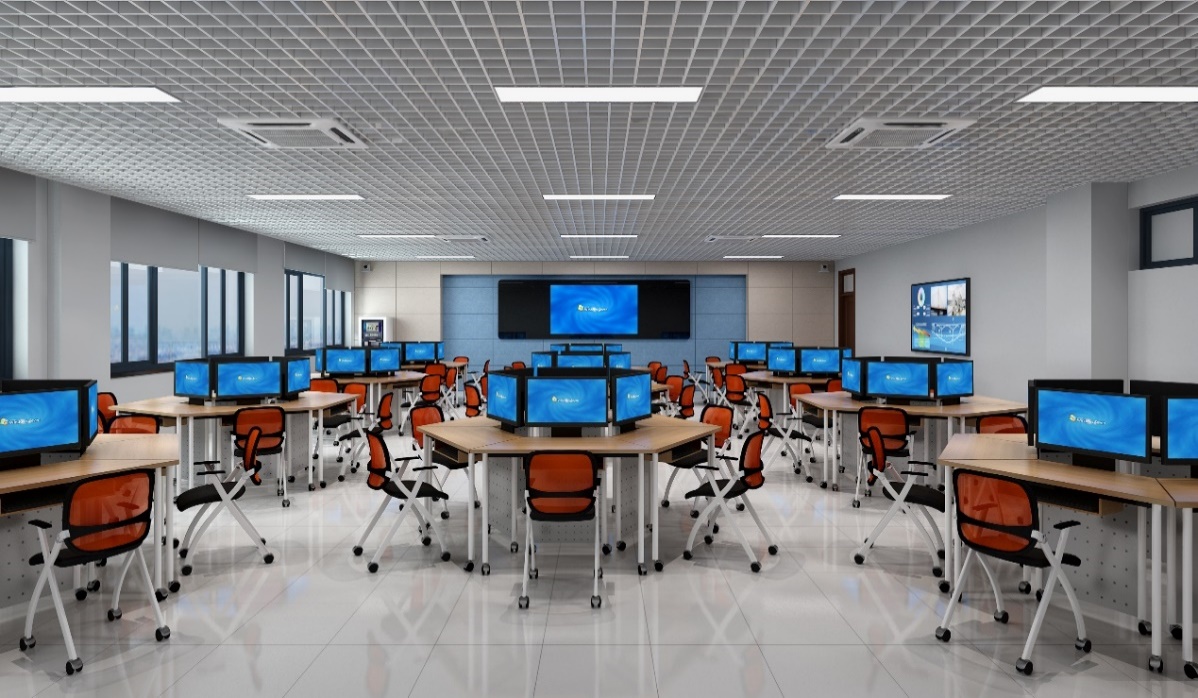 云智慧实验室是集成了物联网技术、云桌面技术、智慧教学系统的多媒体机房。包含有智慧教学大屏、云桌面终端电脑、六边形讨论桌等较为先进的教学硬件和软件设施。