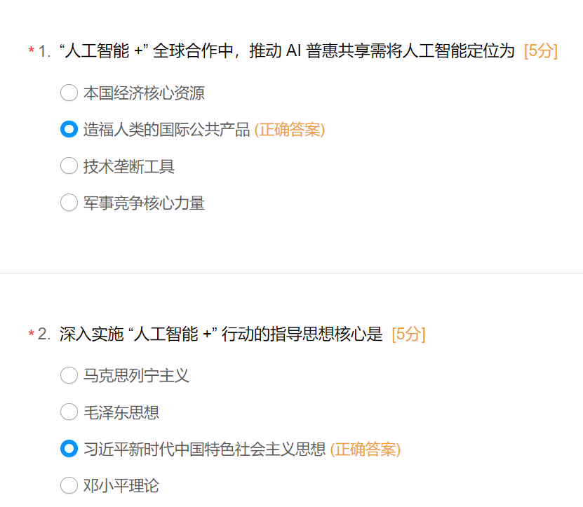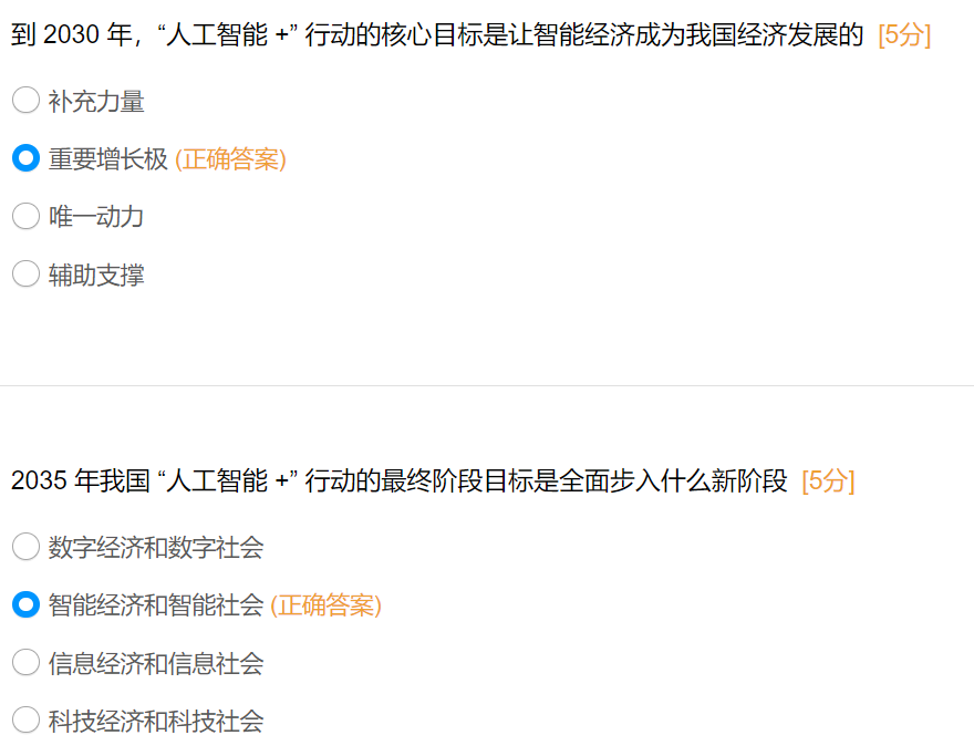 此次知识问答紧扣《关于深入实施“人工智能+”行动的意见》,题目覆盖“人工智能+”全球合作、发展目标、领域应用、科学技术行动等模块,具体涉及推动AI普惠共享的定位、不同阶段发展目标、农业数智化转型措施、社会治理创新方向等内容,全面检验教师对“人工智能+”政策与实践知识的掌握深度。从答题结果来看,教师对核心目标与关键领域措施的认知较为扎实,但同时也反映出教师对“人工智能+”细节性指标、系统性框架的掌握仍需加强。