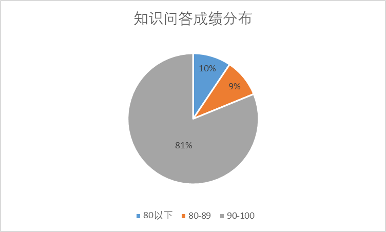 此次活动中,教师们通过问答的形式,对报告中的重要政策进行了深入探讨。从结果反馈来看,81%的教师成绩在90-100分,体现出他们对政府政策的关注,对报告内容的充分学习,但同时也存在个别教师对文件内容缺乏了解,对政策背后的深层含义把握不够准确。针对这一问题,学院将以此为契机,加强引导,进一步提高教师的政策意识。