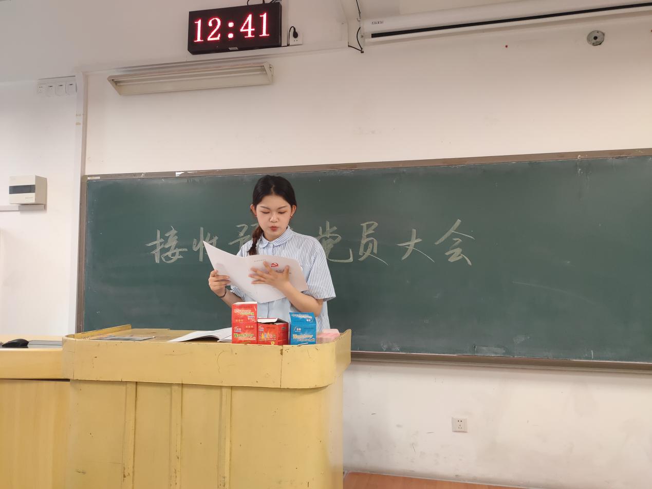 各位党员在杨志一同学宣读入党志愿后针对是否同意接收其为预备党员进行表决,投票结果为全票通过,会议决定同意接收杨志一为预备党员。