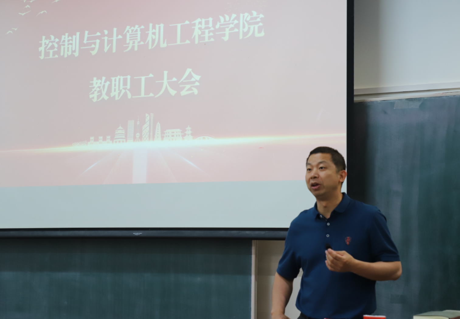 5月25日下午,控制与计算机工程学院于主楼E102召开教职工大会,学院全体教职员工参加会议。会议由学院党委副书记、工会主席耿晔主持。