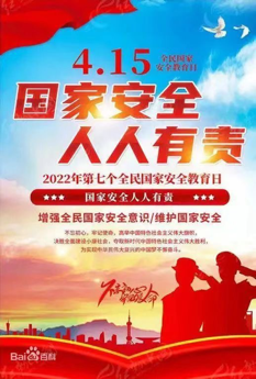 全民国家安全教育日是为了增强全民国家安全意识,维护国家安全而设立的节日。2015年7月1日,全国人大常委会通过的《中华人民共和国国家安全法》第十四条规定,每年4月15日为全民国家安全教育日。2022年4月15日是第七个全民国家安全教育日,主题是“树牢总体国家安全观,感悟新时代国家安全成就,为迎接党的二十大胜利召开营造良好氛围”。