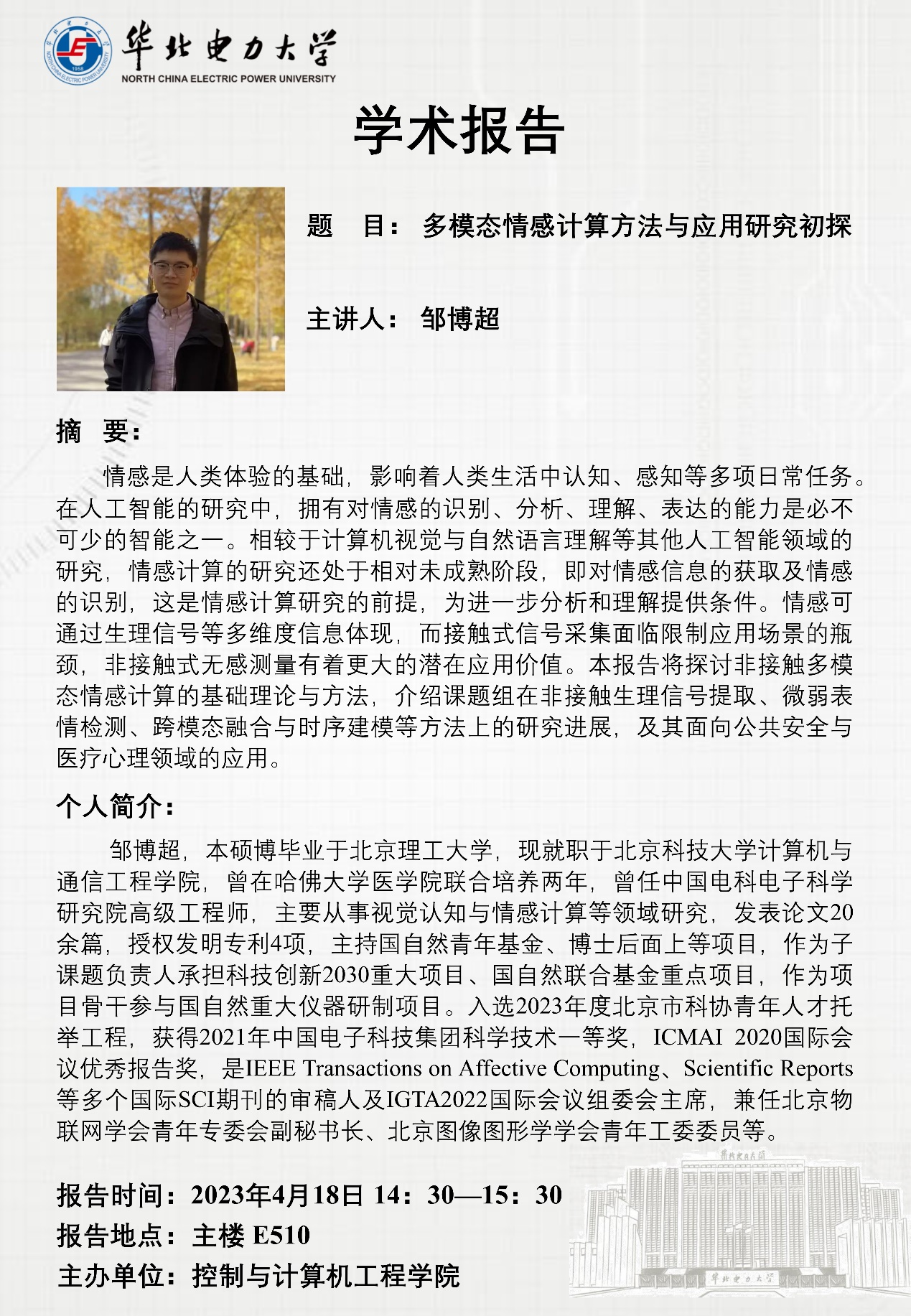 学术报告会:多模态情感计算方法与应用研究初探