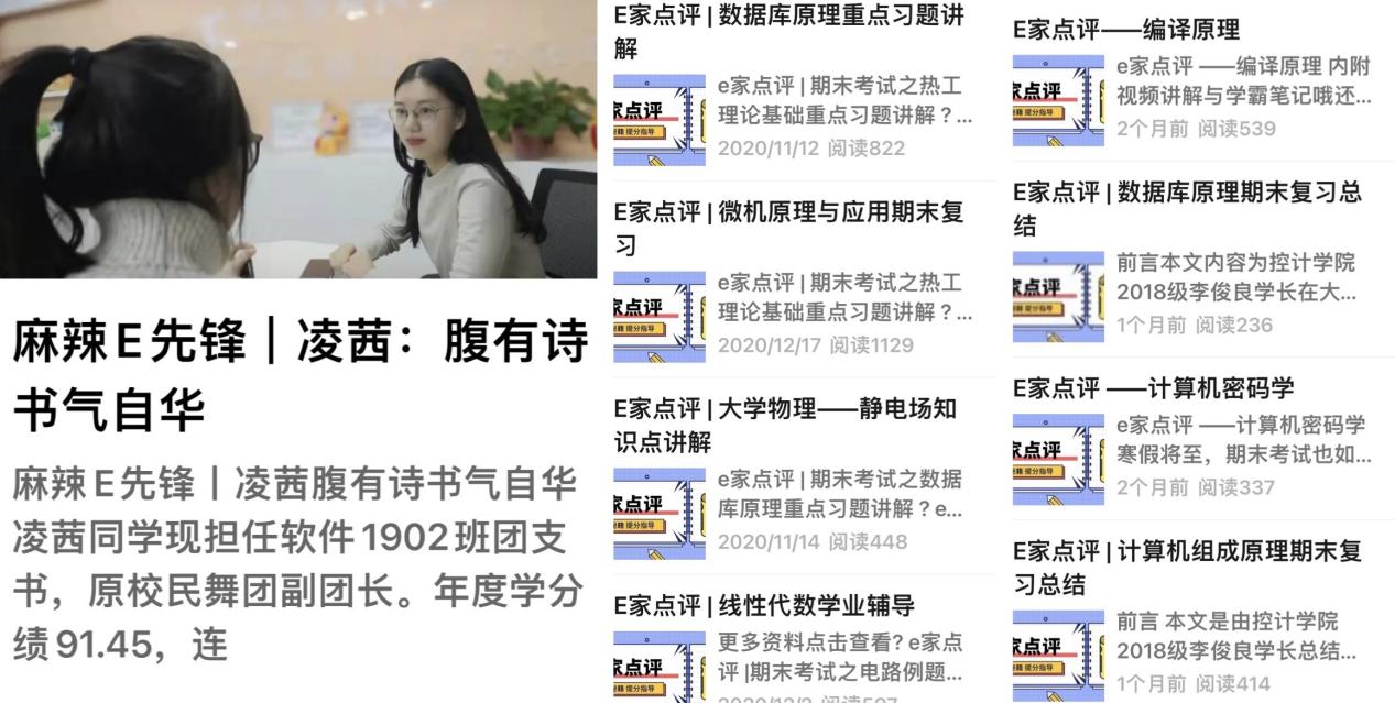 运用网络新平台,营造良好促学向学氛围。加强新媒体平台建设,发挥网络思政在学风引领中的作用。依托“E声麻辣烫”网络文化工作室,学院微信公众平台“ncpeu薪火控计”筑牢“两育六创”格局,其中“E家点评”栏目通过录制课程、习题讲解视频开展辅导答疑,共发布26期学习视频,超过18000人次观看。“麻辣E先锋”栏目以身边榜样激励身边人,本学期共选树4名先进典型,深入挖掘和宣传学生德智体美劳全面发展的优秀事迹,分享学习计划、方法、经验,发挥示范引领作用,实现育人育己功能。发布辅导员原创网络文章,形成好学乐学的向上氛围,郭笑妍老师撰写的《翘课,翘掉的是什么》聚焦学生关注,及时发声引导,在学校第三届网络教育优秀作品推选展示活动中获二等奖。各专业建立课程学习交流答疑微信群,高年级同学和同年级学有余力的同学实时在线答疑解惑,实现互帮互助、互促互进。