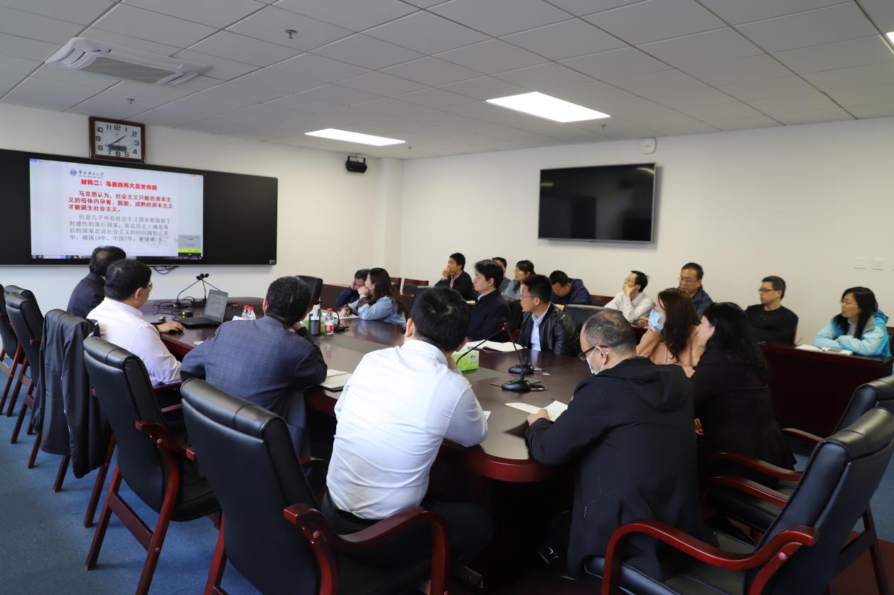 会议邀请了马克思学院党总支书记孙平作《不忘初心,牢记使命——三代中国共产党人对中国特色社会主义的探索》的专题报告。