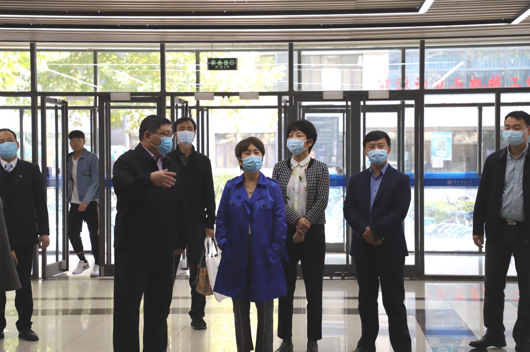 关会长一行人来到学院一层大厅观看学院简介视频。学院党委书记孟大伟对学院“三全育人”工作的开展情况进行介绍,并陪同参观学院5层学生成长发展中心,辅导员办公室,听取学院 “E声麻辣烫”网络思政工作室相关负责人的介绍。