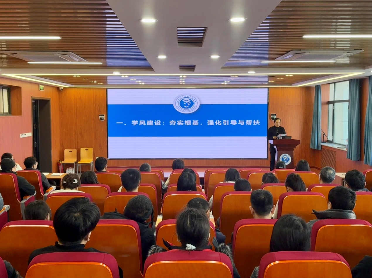 随后,王璐围绕学风建设、就业工作与安全稳定三大核心任务,通过详实数据系统介绍了学院本科生的整体情况。班主任、辅导员与专任教师密切协作,形成育人合力。在学风建设方面,班主任要协同各方持续优化学风培育机制;在就业工作中,要深度参与学院就业服务体系,将全程化职业规划贯穿学生四年培养全过程;在安全工作方面,要筑牢意识形态、财产安全和消防安全等防线,通过强化宣传教育、开展日常排查、完善联动处置机制,牢固树立“大安全”工作理念。