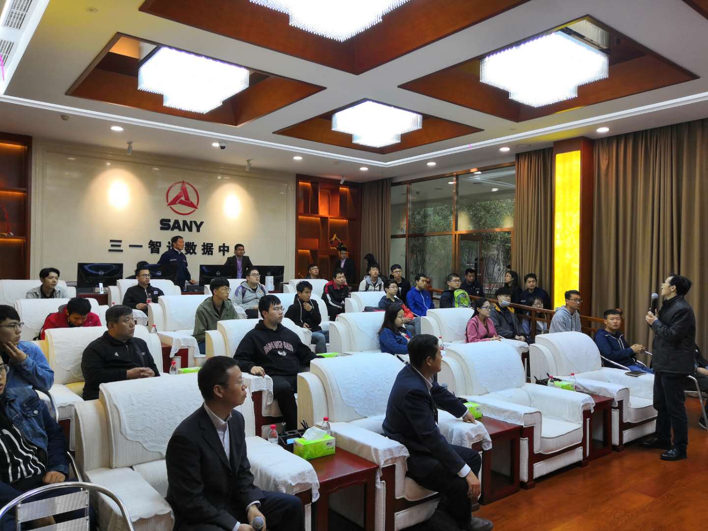 随后,师生一行人来到了三一智造数据中心,在这里通过宣传片进一步了解到了三一重工取得的辉煌成就与他们在智能制造与信息化建设方面的决心。“中国制造2025”的重点在于推动“中国智造”,三一重工作为行业的代表者对智能智造积极配合、大力推进,为祖国的建设做出一份贡献。