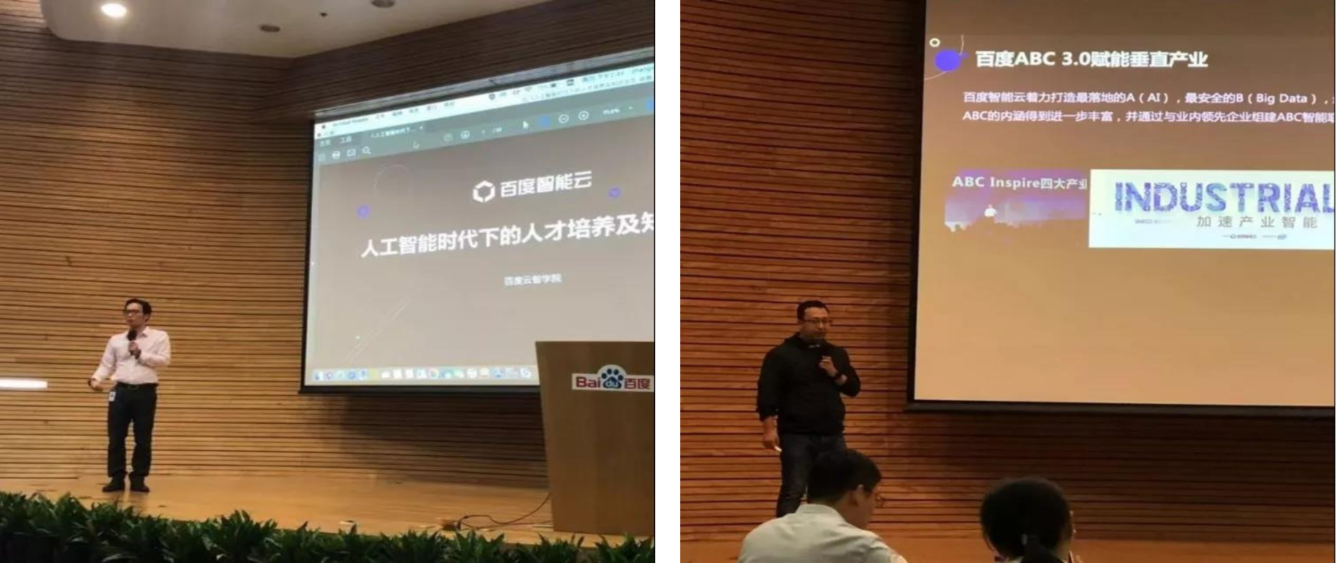 研讨会上,百度云智学院院长刘钒、百度智能云北方区教育行业负责人胡穗等嘉宾从战略规划、技术、产品等多个角度,向大家全面介绍了百度在人工智能领域产教融合的探索以及人才生态赋能及产业转型经验。