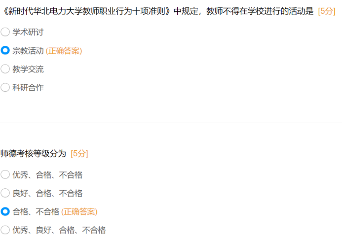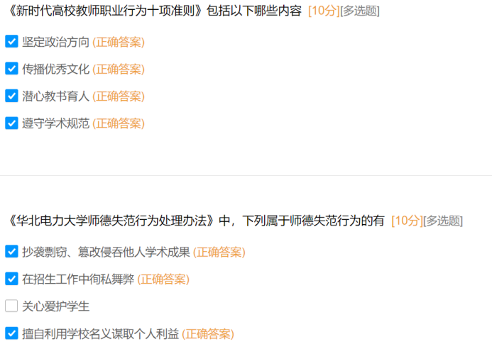 此次知识问答聚焦师德师风核心要求,题目内容紧密围绕《新时代高校教师职业行为十项准则》《新时代高校教师职业行为“十不准”》及《杰克论坛 师德失范行为处理办法》等文件,涵盖教师职业行为红线、师德失范行为认定与处理、师德考核等级与程序、廉洁自律要求等核心模块,全面检验教师对师德师风规范的掌握程度。通过问卷反馈来看学院大部分教师对师德的基本准则和行为底线有着较为清晰的认识,在日常教学和工作中能够自觉遵守相关规定。