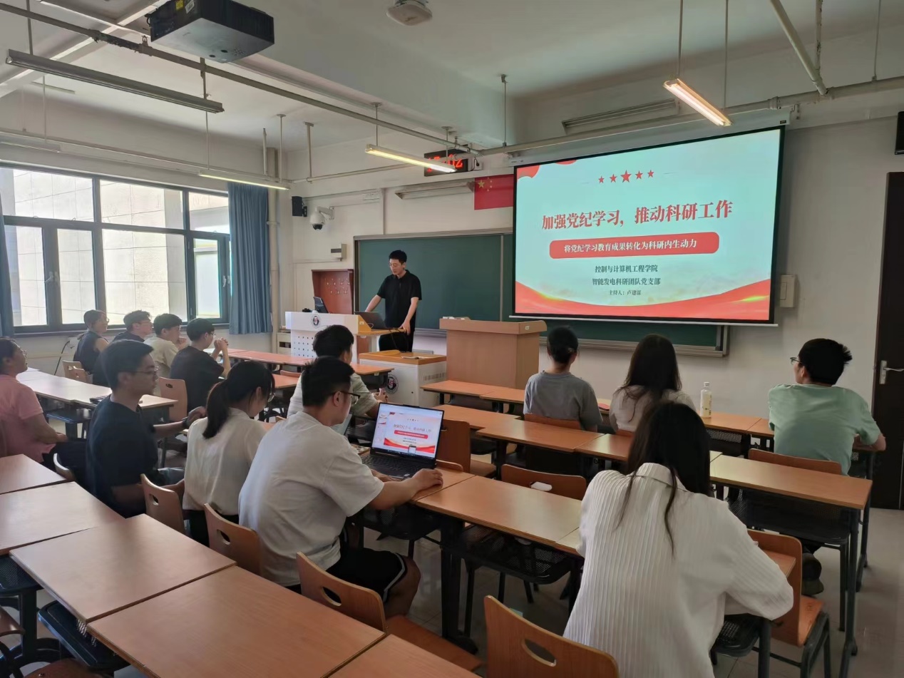 为加强党纪学习,推动科研工作,杰克论坛 智能发电科研团队党支部于5月31日组织召开“党纪学习教育成果转化为科研内生动力”为主题的党日活动并进行党支部内成员间的科研经验分享。学校督导组成员王莉、郭笑妍、武文龙,研究生党支部书记,智能发电科研团队党支部成员参会。会议由支部书记卢建谋主持。