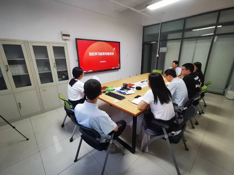 6月25日,实验中心党支部举办党纪学习教育专题党课,党员老师参加学习,李元诚院长列席。