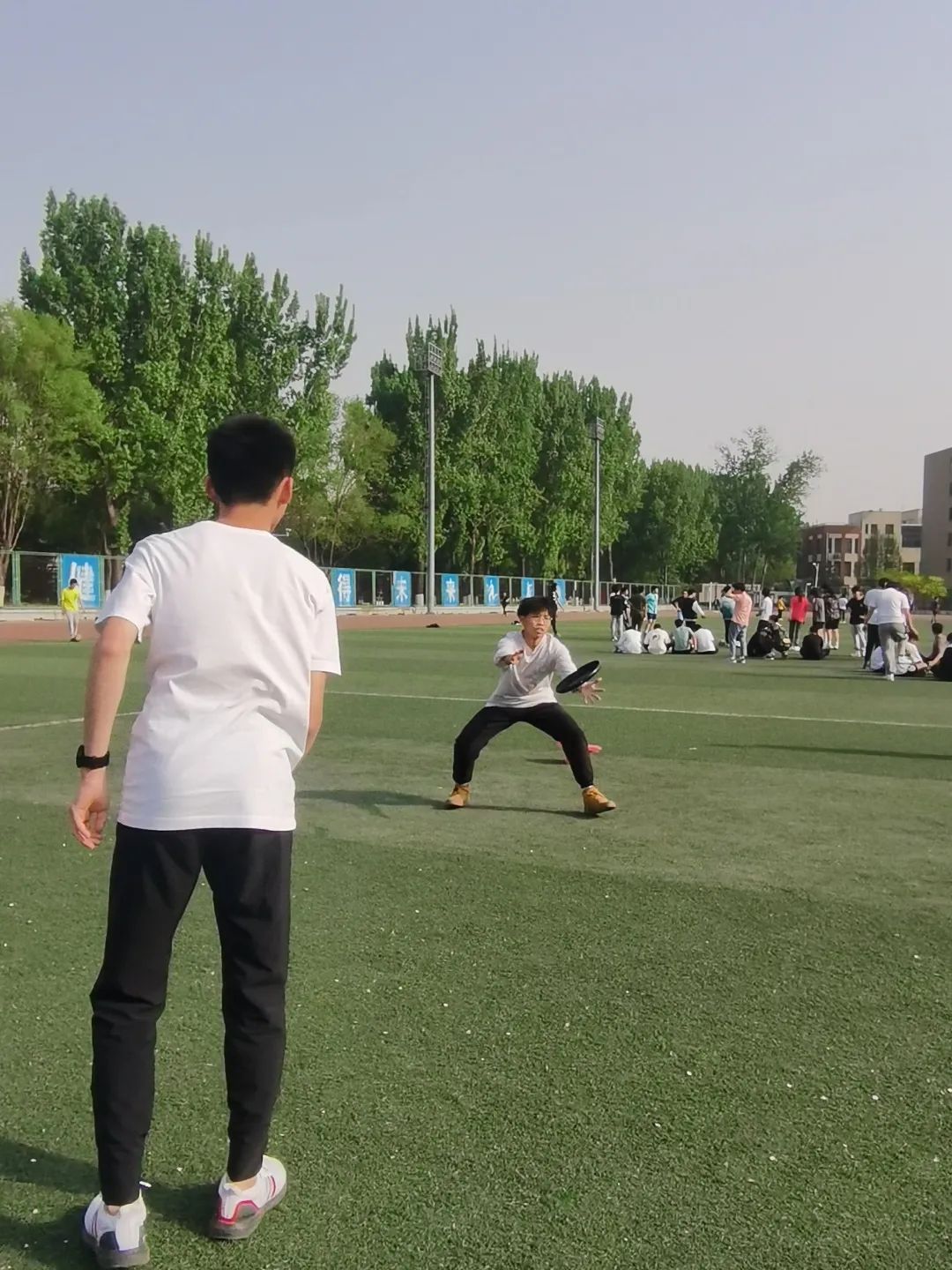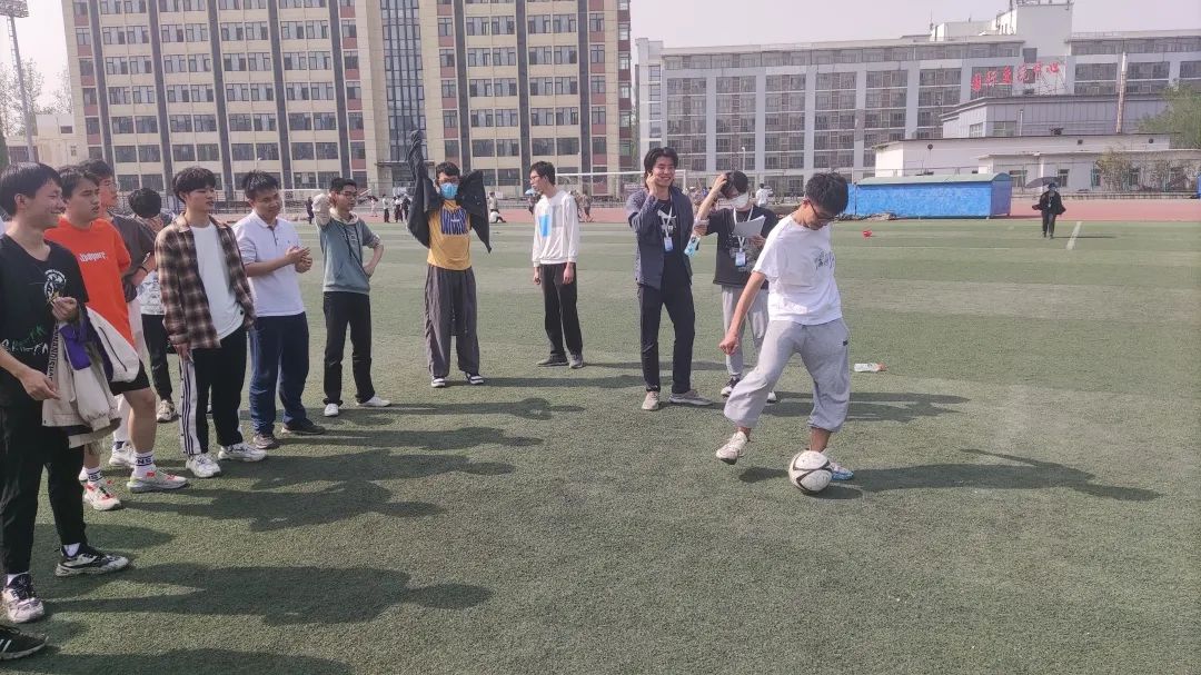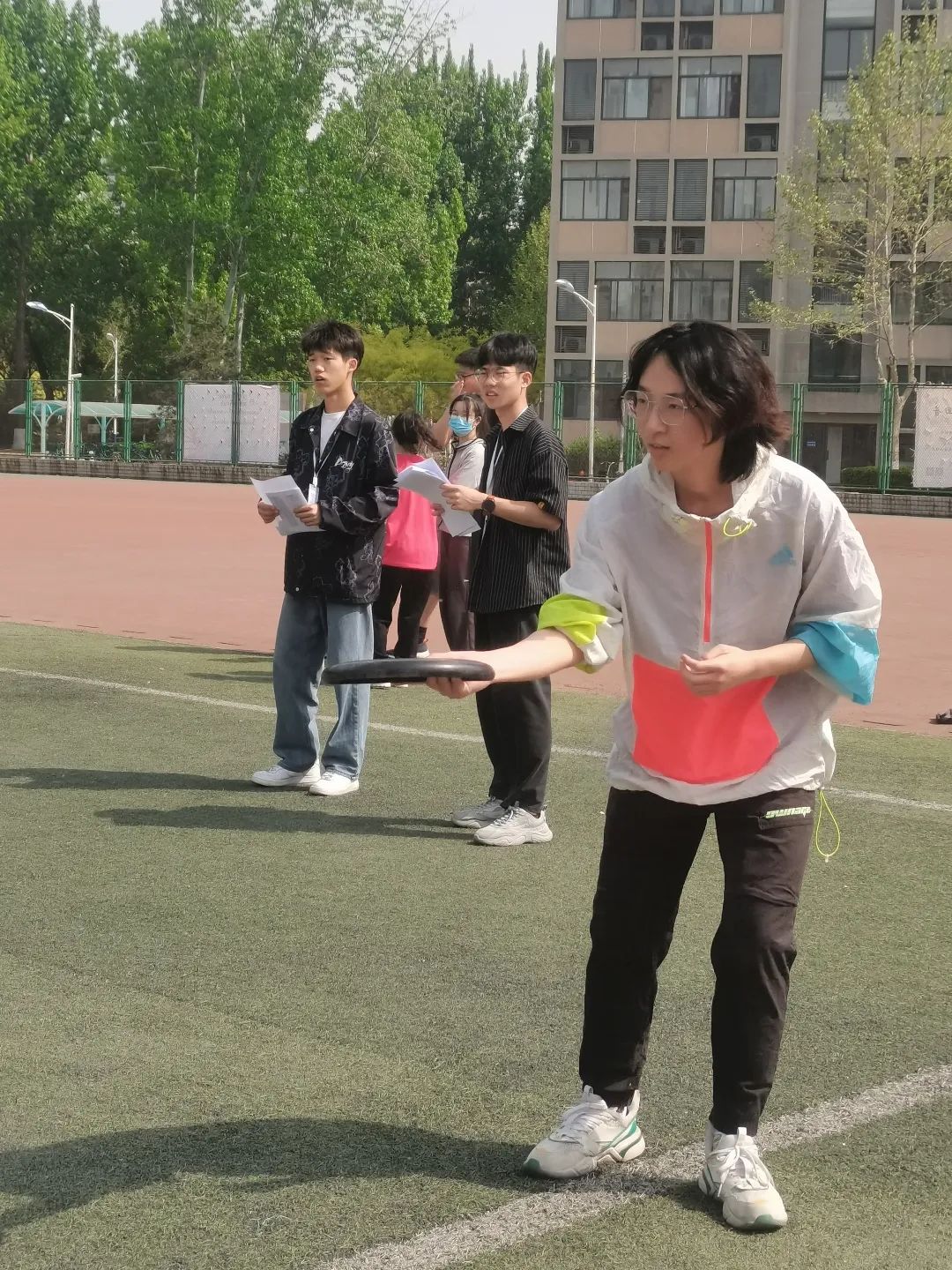 本次学院运动会新增加了两个团队娱乐项目:飞盘答题接力和足球选择射门。不像传统单人项目那样耗费天赋和体力,团队项目更考验集体的配合,考验同伴之间的默契,和当今大学生的知识储备。