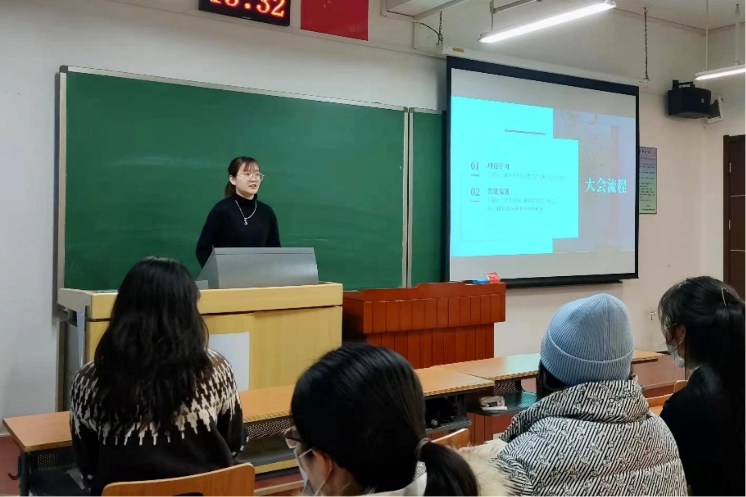 罗卓童向与会的老师、同学们简单介绍研控计2128班党支部的基本概况,随后控计2019级学生党支部书记、控计2019级辅导员李哲雅老师进行总结发言。