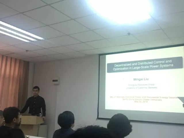 2018年5月25日上午10:30,第262期“前沿&创新”学术论坛在主E1009成功举行。本期学术论坛的主讲嘉宾是加州大学伯克利分校能源与资源组的博士后刘明玺先生,报告主题为“分散式、分布式控制和优化在大规模电力系统中的应用”。尽管天气炎热,与会师生的热情却丝毫不减,论坛尚未开始就已座无虚席。