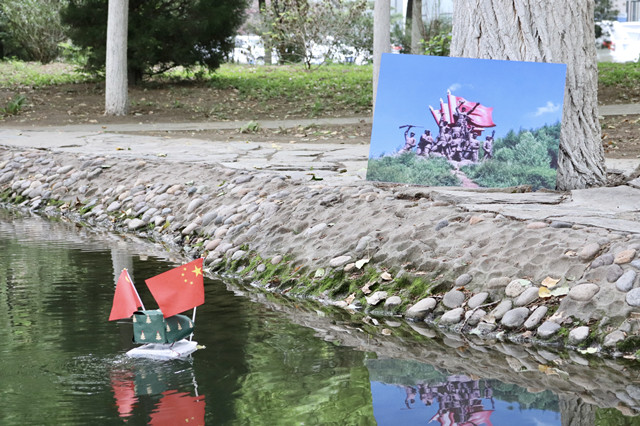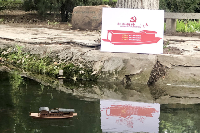 在工作人员的精心布置下,醒目的“庆祝中国共产党建党100周年”活动标语首先映入眼帘,随后是从百年党史中精选和制作的十大党史事件展板,沿河道设置了“打卡点”、终点为“100”标识字样。