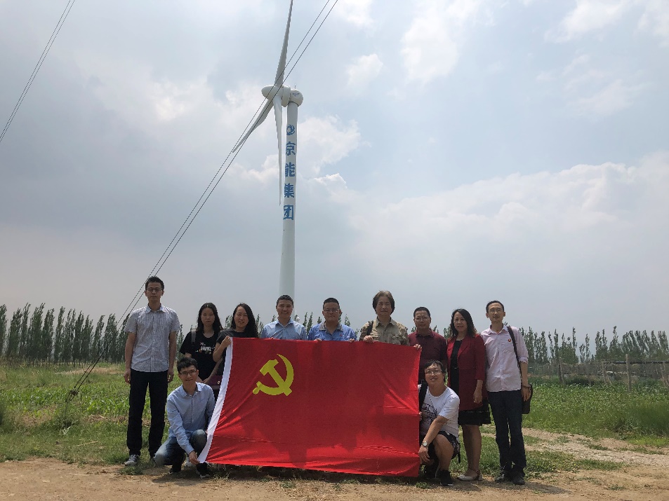 2019年6月6日,控计学院测控党支部、京能集团北京鹿鸣山官厅风电场(以下简称官厅风电场)党支部和研控计1724班党支部开展红色“1+1+1”党支部共建活动,本次活动主要是参观、学习和调研官厅风电场党支部建设和绿色电力生产状况,活动在京能集团北京鹿鸣山官厅风电场进行。官厅风电场党支部成员,测控党支部7位老师以及研控计1724班党支部党员3人共计10余人参与了此次共建活动。