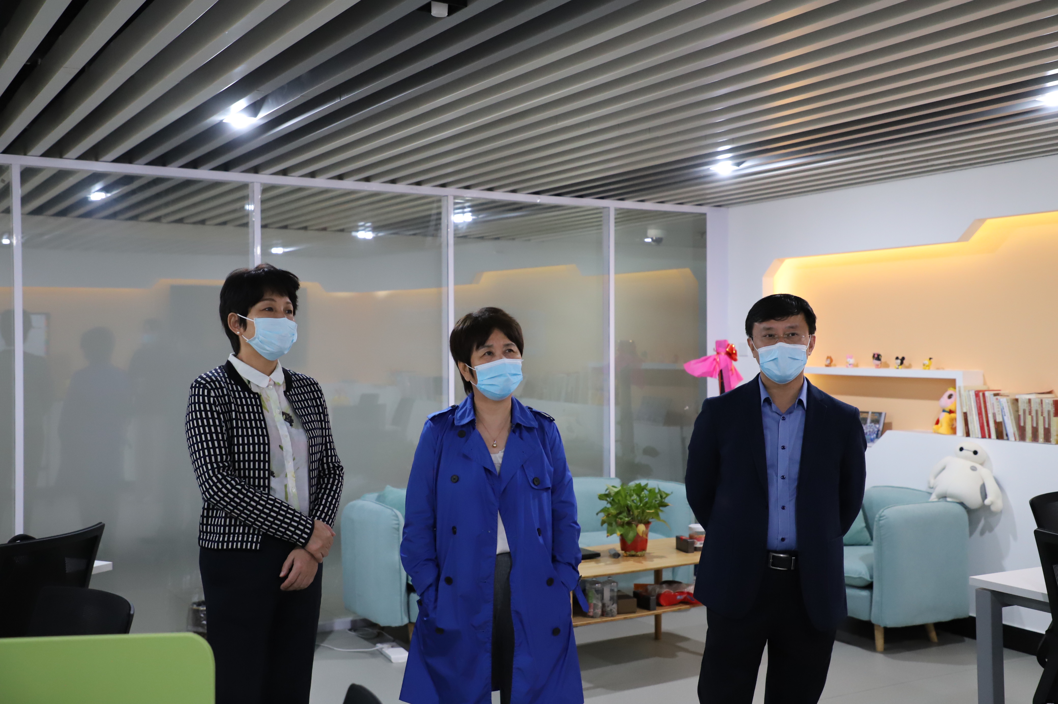 关会长一行人来到学院一层大厅观看学院简介视频。学院党委书记孟大伟对学院“三全育人”工作的开展情况进行介绍,并陪同参观学院5层学生成长发展中心,辅导员办公室,听取学院 “E声麻辣烫”网络思政工作室相关负责人的介绍。