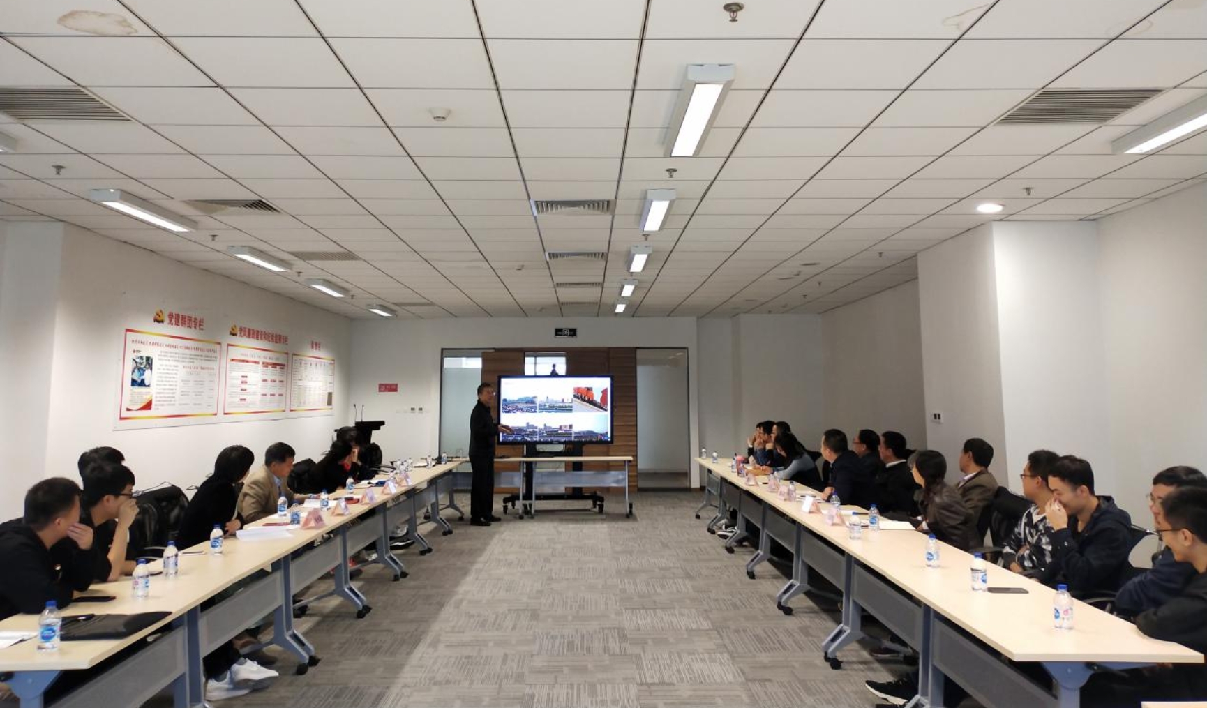 聚焦科研合作,共商智能发电技术。企业党员张东明经理为与会人员介绍了国电智深控制技术有限公司最新研发的“岸石”智能控制系统,与会老师分享了各自在相关领域科研成果。双方针对产学研合作中的企业科研需求、教师现实压力、学生培养质量等进行了深入探讨,并就着眼于实现多方共赢,在智能发电技术的关键领域持续开展深入合作达成共识,确保支部共建取得实效。